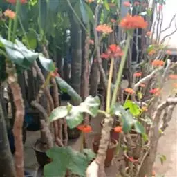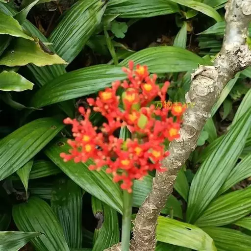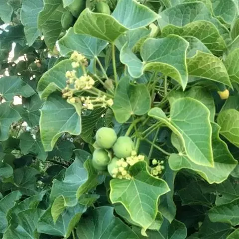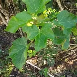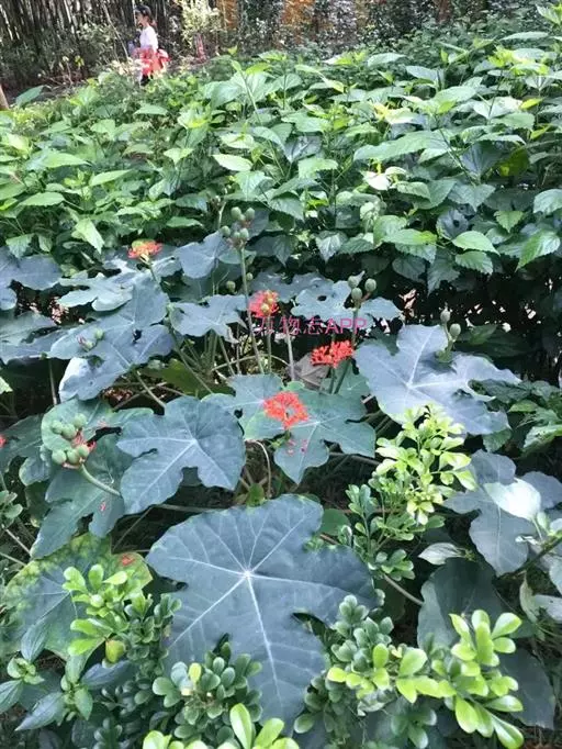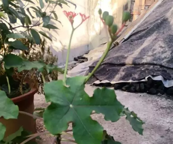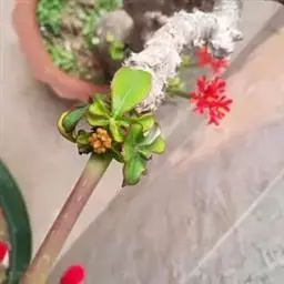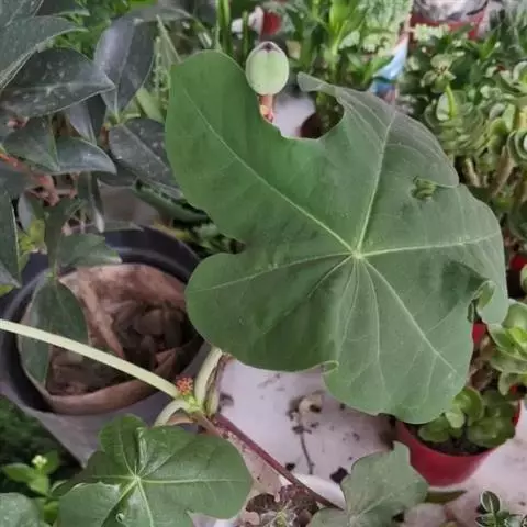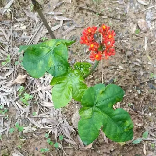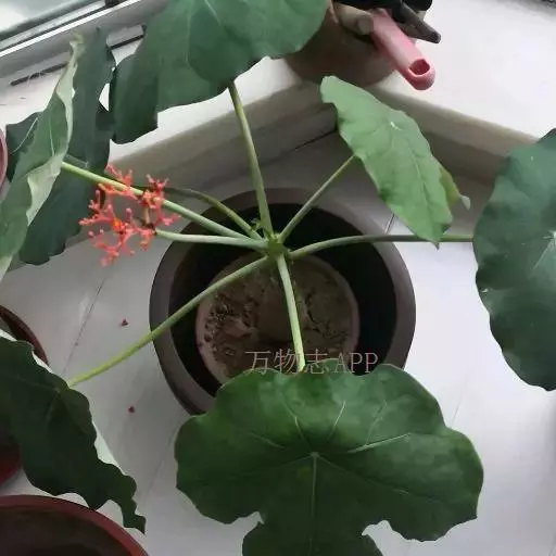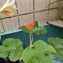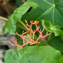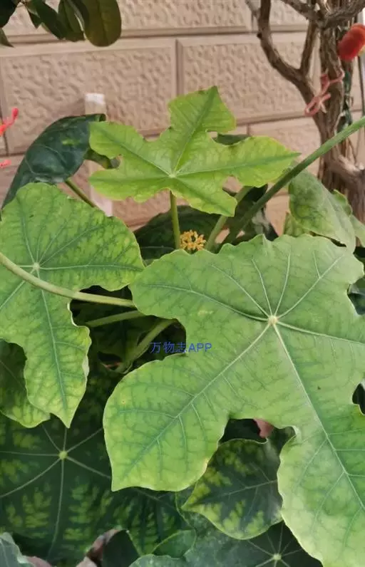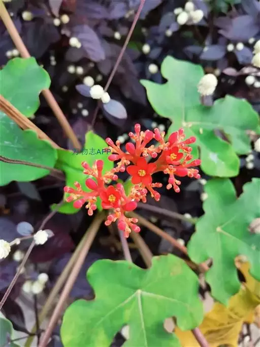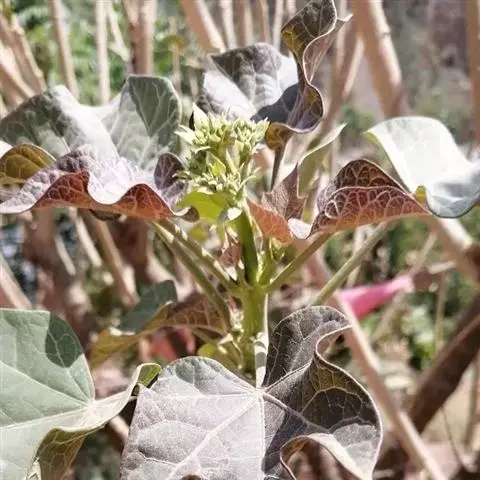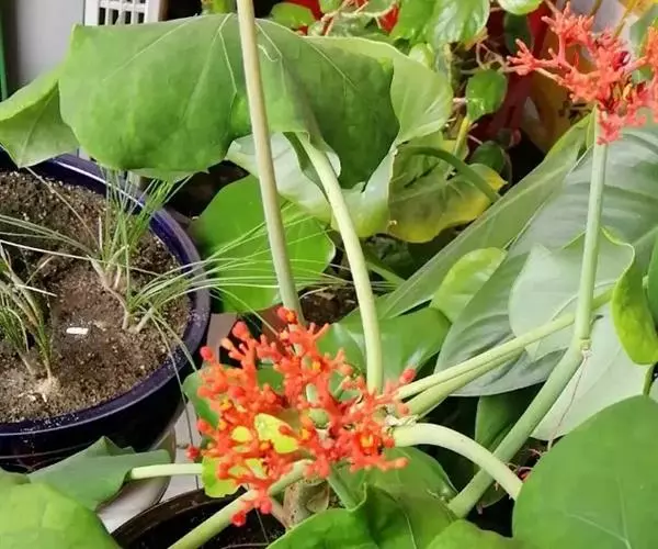 佛肚树(学名:Jatropha podagrica Hook.)是大戟科麻疯树属的肉质灌木,茎基部膨大呈卵圆状棒形,茎端两歧分叉。茎表皮灰色易脱落。叶簇生分枝顶端,绿色,光滑又稍具蜡质白粉。托叶角质分叉,刺状,宿存于茎枝上很长时间。花序长15厘米,重复两歧分叉,花鲜红色。
