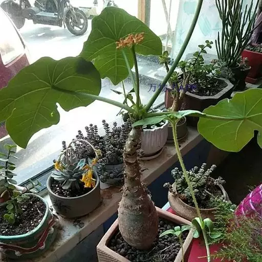 夏季:佛肚树在夏季高温期通常进入休眠状态,对肥水要求不多,甚至要控肥控水。肥水管理按照“花宝”——清水——清水——“花宝”——清水——清水顺序循环;室外养护植株的间隔周期约3-5天,放在室内养护的约4-7天。浇水时间尽量安排在早晨或傍晚温度较低的时候进行。还要经常给植株喷雾。