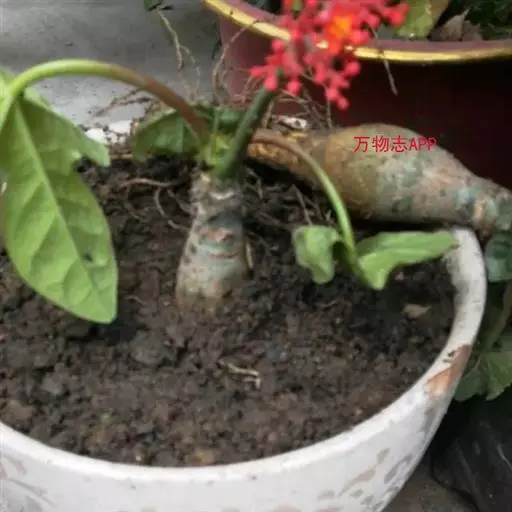 注意,与许多其它同属大戟科的植物相同,佛肚树植株内具有有毒的白色汁液。