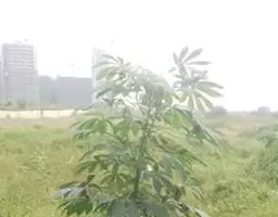 ⑸依上述步骤在膏桐的各枝上进行嫁接,这样膨大球茎就移到膏桐树上成为一棵新的植株共同生长。