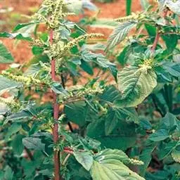反枝苋是苋科苋属的一年生草本植物。株高达1米;茎密被柔毛;叶菱状卵形或椭圆状卵形,先端锐尖或尖凹,…