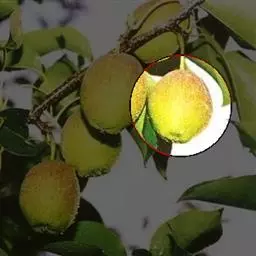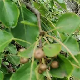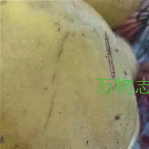 果实扁圆形,有2-3条缝合线,含糖量高达16%,多汁,口感极佳,成熟颜色为红褐色,套袋果金黄色,半透明状,成熟期为8月份。