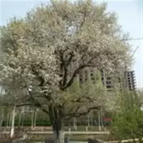 白梨蔷薇科,苹果亚科,梨属高5-8米乔木,树冠开展;二年生枝紫褐色,叶片卵形或椭圆卵形,…