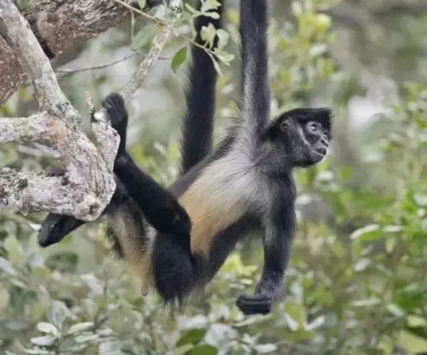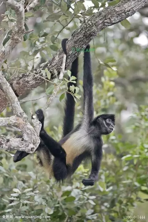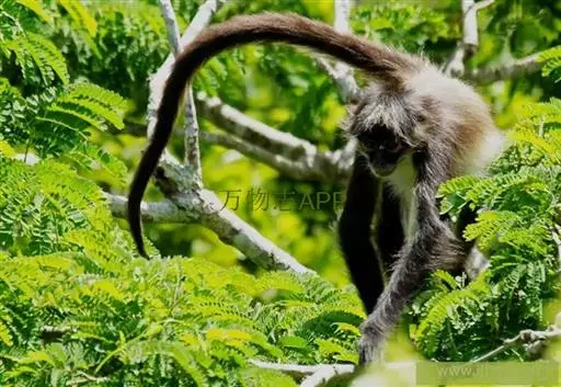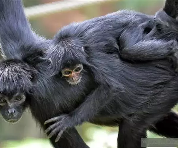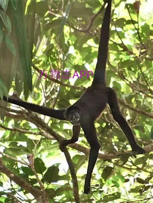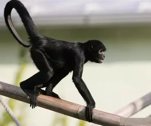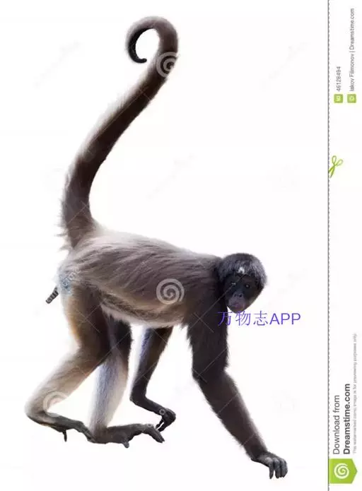 蜘蛛猴是猿猴类中最有趣的一种动物。有一根卷曲的尾巴,这根尾巴既有平衡身体的作用,又有抓曳食物、悬吊躯体的功能。其中又以蜘蛛猴的尾巴最为奇妙。蜘蛛猴动作特别敏捷,已知的蛛蜘猴有7种。蜘蛛猴瘦高个子,但有点大腹便便。头体长约35-66厘米。四肢细长,手没有拇指。毛茸茸的尾巴约有60-92厘米长,很会抓住树枝,其功能有点像手。几种蜘蛛猴的毛发颜色不一,有灰色、红色、深褐色和黑色几种。长短和浓密的程度也不一样。