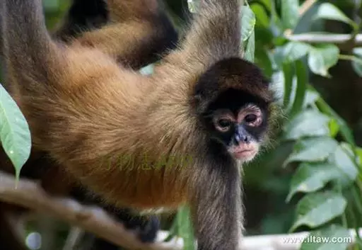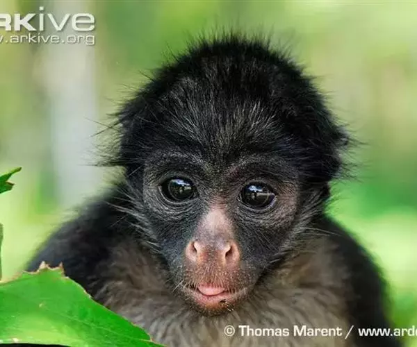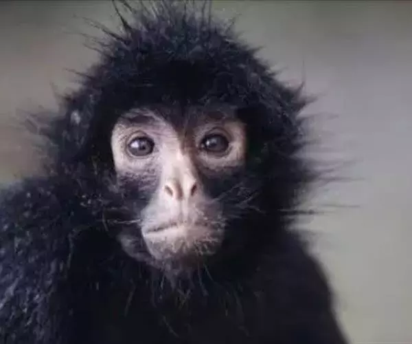 蜘蛛猴的毛相一般以黑色最多,但是也是褐色、灰色的。毛粗略似羊毛。特别是它的形体和在树上爬的动作,酷似一只蜘蛛,故名蜘蛛猴。