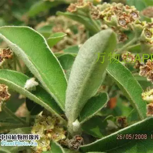 常绿灌木至小乔木,高2-4米;枝条丛生,小枝幼时密被黄白色绒毛,老时灰褐色,无毛;树皮光滑,暗灰色,密被皮孔。叶片长圆披针形,有时倒卵形、倒披针形至椭圆形,长3-6厘米,宽1.5-2.5厘米,先端急尖或圆钝并有凸尖,基部楔形至圆形,全缘,上面无毛或仅在中脉上有少数柔毛,光亮,下面幼时密被白色绒毛,逐渐稀薄,侧脉7-12对,下面明显;叶柄粗壮,长4-6毫米,密被黄白色绒毛;托叶丝状,不久脱落。花多数,密集成顶生复伞房花序,总花梗和花梗被黄白色绒毛;苞片披针形,膜质,早落;花梗长2-3毫米;花直径8-9毫米;萼筒钟状,外面密被绒毛,内面被柔毛;萼片三角形,先端圆钝,边有腺齿,外面密被绒毛,内面无毛或几无毛;花瓣白色,平展,近圆形或宽卵形,长3-4毫米,先端圆钝或微凹,基部有极短爪;雄蕊20,短于花瓣,花丝光滑无毛;子房外被柔毛,花柱侧生,无毛,柱头头状。果期心皮干燥,革质,长圆柱状,顶端稍具短柔毛,长5-7毫米,褐色至黑褐色,突出于肉质红色杯状萼筒之中。花期4-5月,果期8-11月。