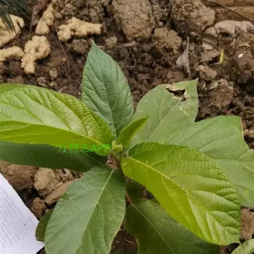 对叶榕(原变种),灌木或小乔木,被糙毛,叶通常对生,厚纸质,卵状长椭圆形或倒卵状矩圆形,长10-25厘米,宽5-10 厘米,全缘或有钝齿,顶端急尖或短尖,基部圆形或近楔形,表面粗糙,被短粗毛,背面被灰色粗糙毛,侧脉6-9对;叶柄长1-4厘米,被短粗毛;托叶2,卵状披针形,生无叶的果枝上,常4枚交互对生,榕果腋生或生于落叶枝上,或老茎发出的下垂枝上,陀螺形,成熟黄色,直径1.5-2.5厘米,散生侧生苞片和粗毛,雄花生于其内壁口部,多数,花被片3,薄膜状,雄蕊1;瘿花无花被,花柱近顶生,粗短;雌花无花被,柱头侧生,被毛。花果期6-7月。