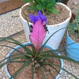 紫花凤梨,是凤梨科铁兰属的多年生草本植物。株高不及30厘米;叶片拱状线形,叶丛族生于短缩茎上,…