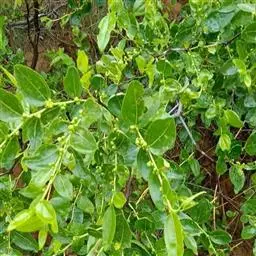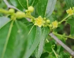 枣树 落叶小乔木,稀灌木,高达10余米;树皮褐色或灰褐色;有长枝,短枝和无芽小枝(即新枝)比长枝光滑,紫红色或灰褐色,呈之字形曲折,具2个托叶刺,长刺可达3厘米,粗直,短刺下弯,长4-6毫米;短枝短粗,矩状,自老枝发出;当年生小枝绿色,下垂,单生或2-7个簇生于短枝上。