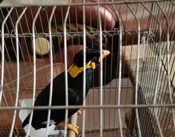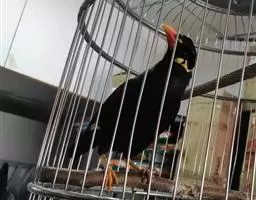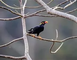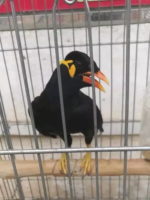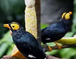 金冠树八哥为椋鸟科树八哥属的鸟类。体长约23厘米,闪辉黑色。特征为具翼斑及颏黄色,脸颊裸露皮肤粉黄色。…