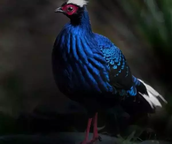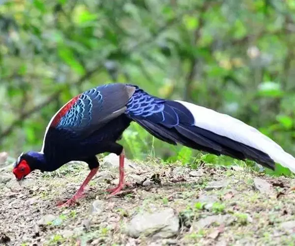 蓝马鸡是珍稀名贵的禽类,羽毛美丽,可作装饰用,头侧绯红,耳羽簇白色、突出于颈部顶上,通体蓝灰色,…