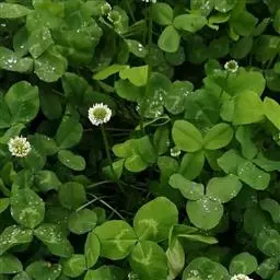 白车轴草,豆科车轴草属的多年生草本植物,茎贴地匍匐;叶柄直立,小叶心形,边缘具细齿,叶脉明显,…