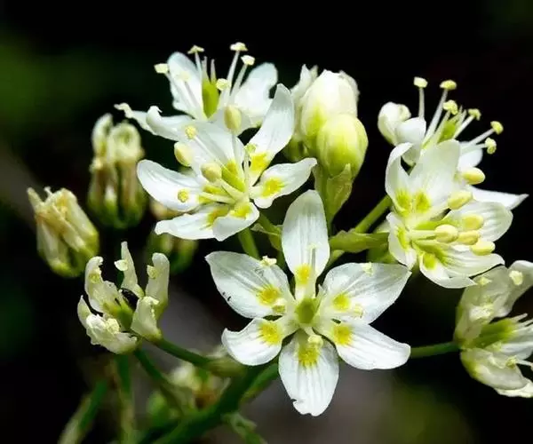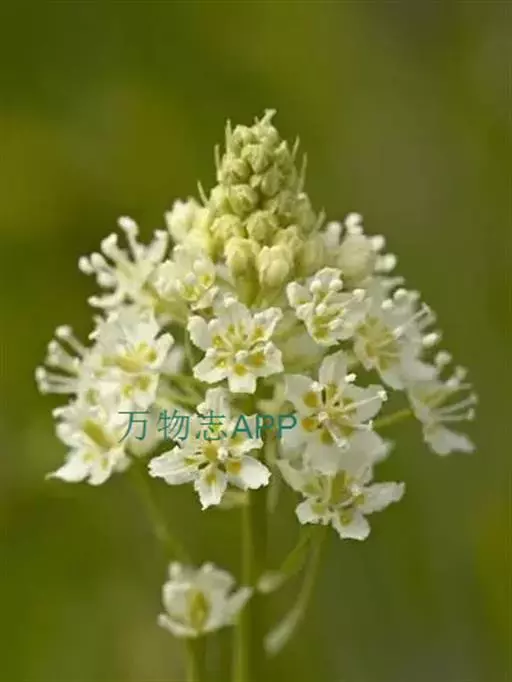 多年生草本,植株高30-50厘米;鳞茎小葱头状,外层鳞茎皮黑褐色,有时上部稍撕裂为纤维。叶基生,条形,长12-33厘米,宽2-8毫米,在花葶下部常有1-2枚短叶。总状花序或圆锥花序具疏松的花;花梗长7-20毫米,基部有苞片;花被片绿白色,倒卵状矩圆形至矩圆形,长6-9毫米,宽约2.5毫米,内面基部上方有一顶端2裂的肉质腺体;雄蕊稍短于花被片,花丝向下部逐渐扩大,花药近肾形;子房圆锥形,长约4毫米;花柱3,近果期稍伸出花被外,外卷。蒴果圆锥形,长约15毫米。种子近矩圆形,长约5毫米,有狭翅。