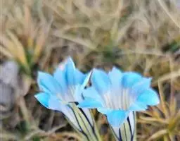 龙胆属植物花色艳丽,色彩丰富,有紫、白、蓝、黄白等多种颜色,适宜作为花坛、花镜或盆花。 龙胆最高不过四、五十厘米,大部份是矮小贴地丛生。一株上有许多分枝,花生于枝上顶端,成古钟形或漏斗形,有4-5个裂瓣,全缘的,也有细裂的成流海似的须。龙胆花在秋冬季一片枯黄的草丛中临风开放,显得分外朴实和幽静,龙胆开花一片片一簇簇,临风摇曳,显出一种淡雅、素静的美,因而成为著名的花卉。