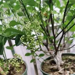 理论依据:整形修剪之前,首先须全面掌握栓翅卫矛的芽、枝、花及各器官的生长规律和特点。根据多年的实地观察和修剪实践,栓翅卫矛的芽分为顶芽、腋芽和不定芽。在一年生新枝顶端有5-8个不等的顶芽,春季发芽时长出5-8个新枝,其中中间的一个顶芽萌发的枝条生长较高、较粗,高度约30-40厘米,基径粗约0.3-0.5厘米;周边顶芽萌发的枝条较短、较细,高度约为30-35厘米,基径粗约0.2-0.4厘米。第二年再从每个枝头的顶芽长出5-8个不等的新枝。依此类推,枝条越长越多,而且冠幅形成明显的年生长层次。随着枝条的增多,树体供给的营养,水分分散,后期顶端新生的枝条越来越细弱。另外,顶芽生长的枝条夹角小,树冠高度增加快,冠径扩大慢,内膛枝老化干枯,通风透光性能差。在顶芽萌发生长时,腋芽一般不萌发,即使有少量腋芽萌发,由于内膛欠光照,只能长成5厘米左右的细小枝条,2-3年后干枯死亡。不定芽在无外伤损失的情况下亦不发芽。如果进行人工回缩和重短截后。腋芽代替顶芽长出许多旺盛的新枝,在主干和主枝基部不定芽萌发出无数个新枝。栓翅卫矛芽和枝的生长特点充分显示了自身原始灌丛生长的遗传习性。栓翅卫矛的花为聚伞花序,随着上年枝的顶芽萌发时从叶腋间同期长出。掌握了栓翅卫矛芽、枝、花的这些生长习性和特点,就可以进行科学合理的修剪。