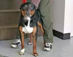 大腿肌肉沉重,且从后面观察时,后躯圆而宽。膝关节显示出良好的角度,飞节到后跟的距离短,且垂直于地面。缺乏角度是很糟糕的。后足爪不象前足爪那么大、那么圆,但非常紧凑,脚垫厚实,非常坚固。