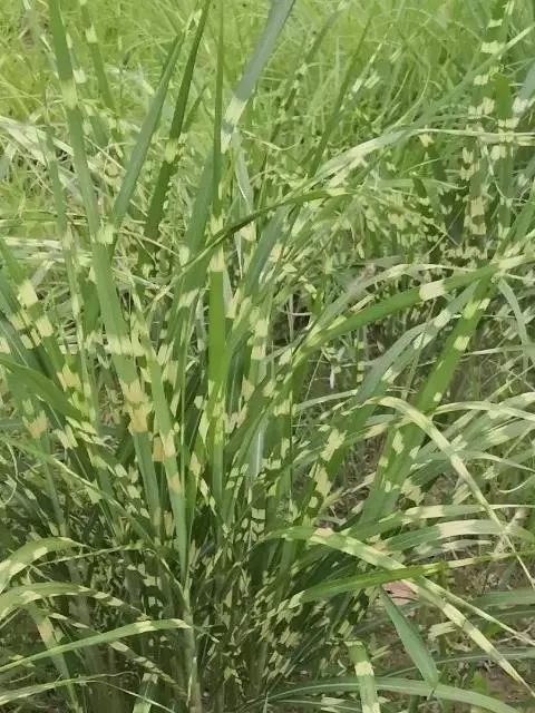 斑叶芒是禾本科、芒属多年生草本植物。丛生状,茎高可达1.7米。叶片有黄色不规则斑纹,…