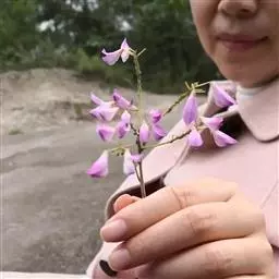 花小,单生或2-3朵簇生于叶腋;花梗下端具2枚大小不等的苞片,萼基部具4枚小苞片,其中1枚极小,位于花梗关节处,小苞片常具5-7条纵脉;花萼钟状,带紫色,5裂,裂片宽卵形,具网状脉,外面及边缘具白毛;花冠粉红色或紫色,长5-6毫米,较萼约长1倍,旗瓣椭圆形,下部渐狭成瓣柄,具耳,龙骨瓣比旗瓣稍长或近等长,翼瓣比龙骨瓣稍短。荚果圆形或倒卵形,稍侧扁,长3.5-5毫米,较萼稍长或长达1倍,先端短尖,被小柔毛。花期7-9月,果期8-10月。