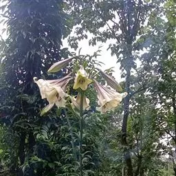 岷江百合(拉丁学名:Lilium regale Wilson),百合科百合属植物,又叫王百合、千叶百合,俗称崖半花、喇叭花、夜香花。岷江百合的鳞茎宽卵圆形,高约5厘米,直径3.5厘米。
