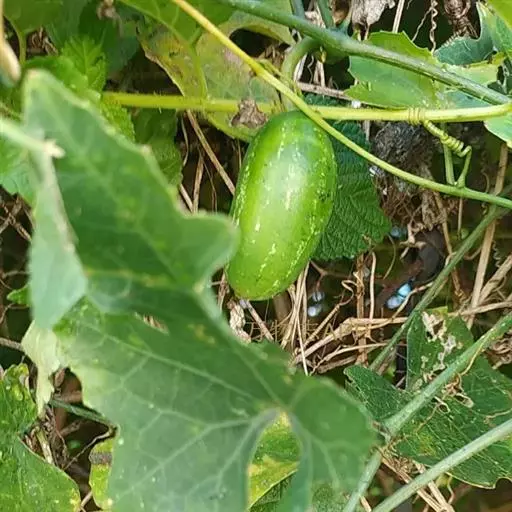 茅瓜又名:异叶马㼎儿。攀援草本,块根纺锤状,径粗1.5-2厘米。茎、枝柔弱,无毛,具沟纹。叶柄纤细,短,长仅0.5-1厘米,初时被淡黄色短柔毛,后渐脱落;叶片薄革质,多型,变异极大,卵形、长圆形、卵状三角形或戟形等,不分裂、3-5浅裂至深裂,裂片长圆状披针形、披针形或三角形,长8-12厘米,宽1-5厘米,先端钝或渐尖,上面深绿色,稍粗糙,脉上有微柔毛,背面灰绿色,叶脉凸起,几无毛,基部心形,弯缺半圆形,有时基部向后靠合,边缘全缘或有疏齿。卷须纤细,不分歧。雌雄异株。雄花:10-20朵生于2-5毫米长的花序梗顶端,呈伞房状花序;花极小,花梗纤细,长2-8毫米,几无毛;花萼筒钟状,基部圆,长5毫米,径3毫米,外面无毛,裂片近钻形,长0.2-0.3毫米;花冠黄色,外面被短柔毛,裂片开展,三角形,长1.5毫米,顶端急尖;雄蕊3,分离,着生在花萼筒基部,花丝纤细,无毛,长约3毫米,花药近圆形,长1.3毫米,药室弧状弓曲,具毛。雌花:单生于叶腋;花梗长5-10毫米,被微柔毛;子房卵形,长2.5-3.5毫米,径2-3毫米,无毛或疏被黄褐色柔毛,柱头3。果实红褐色,长圆状或近球形,长2-6厘米,径2-5厘米,表面近平滑。种子数枚,灰白色,近圆球形或倒卵形,长5-7毫米,径5毫米,边缘不拱起,表面光滑无毛。花期5-8月,果期8-11月。