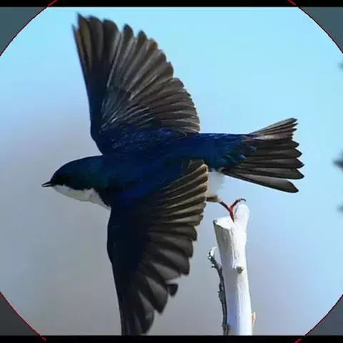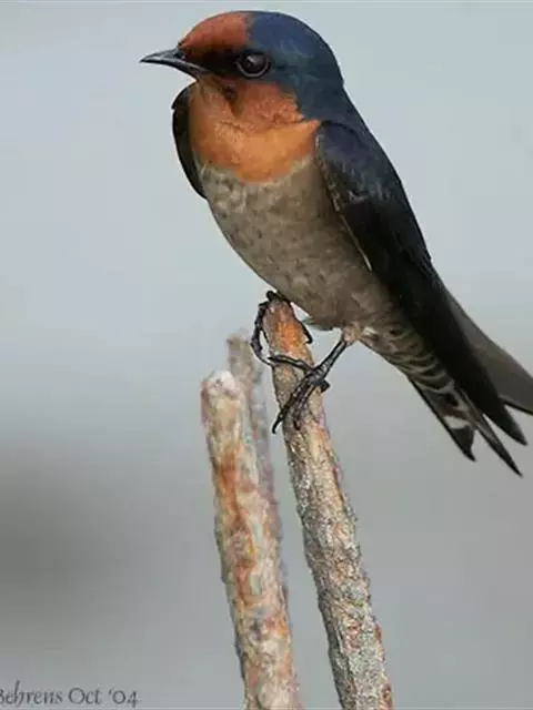 线尾燕,腹部接近纯白色,背部则为深紫色,头部的羽毛是栗色的。