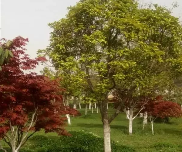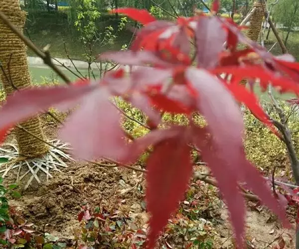 中国红枫最大的特点就是秋季变色由正常绿色变为红色,古人“十月霜叶红似火”,“霜叶红于二月花” 但是中国红枫大部分都是播种苗,变异性比较大.而且随地域的差异变色效果差异比较明显。甚至同一地方不同苗木之间差异也是很大的。而且变色色彩不是很鲜明.红色不是很正.且其间总会有杂色.观赏效果一般。