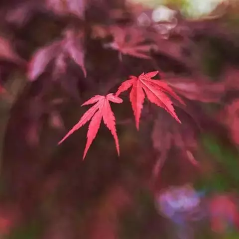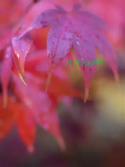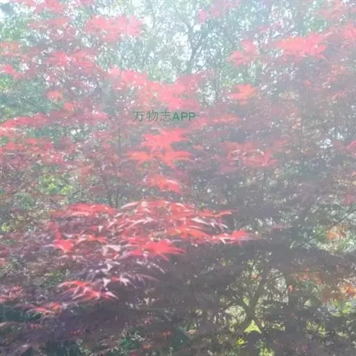 红枫树高2—8米,枝条多细长光滑,偏紫红色。叶掌状,5-7深裂纹,直径5—10CM,裂片卵状披针形,先端尾状尖,缘有重锯齿。花顶生伞房花序,紫色。翅果,翅长2-3CM,两翅间成钝角。