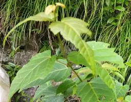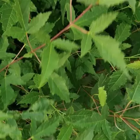 落叶小乔木。树姿开张,小枝细长。树皮光滑,呈灰褐色。单叶交互对生,常丛生于枝顶。叶掌状深裂,裂片5-9.裂深至叶基,裂片长卵形或披针形,叶缘锐锯齿。