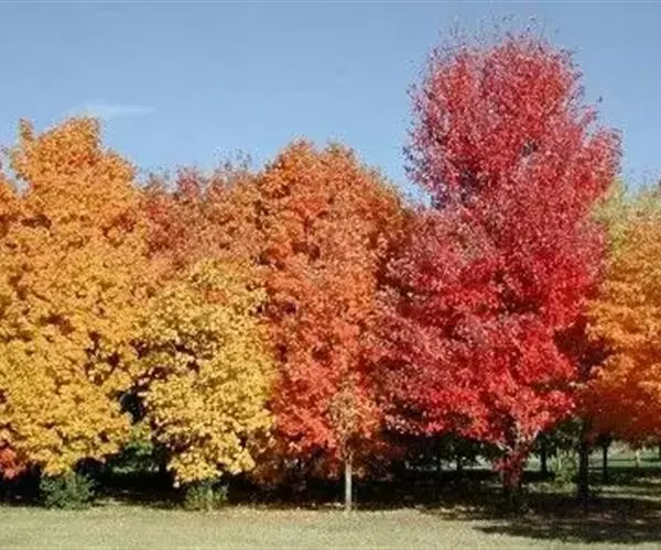 春季新叶泛红,与成串的红色花朵相映成趣;夏季枝叶成阴;秋季叶片为绚丽的红色,持续时间长。树型直立向上,树冠圆形。春天开红色小花,果有翅,红色。该树种生长迅速,是所有美国红枫品种中生长最快的品种。 习性特点: 适应性较强,耐寒、耐旱、耐湿。我国北京、河北、山东、辽宁、吉林、河南、陕西、安徽、江苏、上海、浙江、江西、湖南、湖北、云南、四川、新疆等地的气候均适宜,每年秋季纯正的改良红枫都能稳定地表现出绚丽的红叶效果,酸性至中性的土壤使秋色更艳。