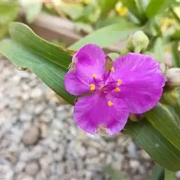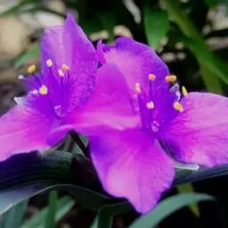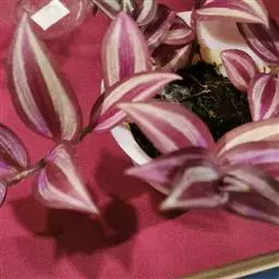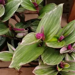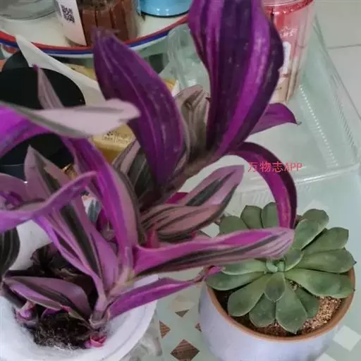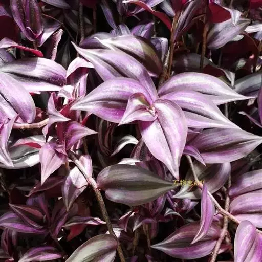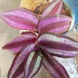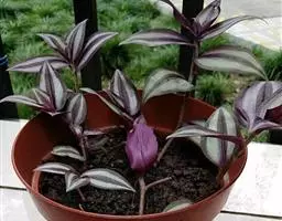 吊竹梅(学名:Tradescantia zebrina Bosse)是鸭跖草科常绿草本植物,茎柔弱质脆,匍匐地面呈蔓性生长。叶互生,无柄;椭圆状卵圆形或长圆形、背面紫色,通常无毛,全缘。花聚生于叶状苞内;花瓣玫瑰粉红色。果为蒴果。花期6-8月。