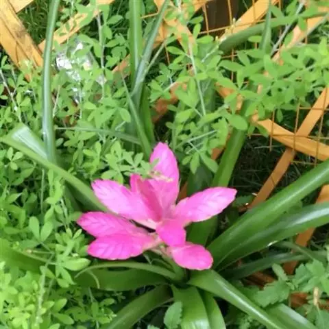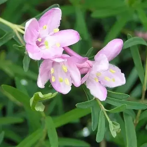花数朵,聚生于小枝顶部的两片叶状苞片内,花瓣玫瑰色粉红色,卵形,约6毫米,先端钝;萼片披针形至长圆状披针形。夏季开花。种子微皱。