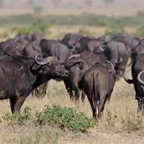 非洲野水牛:共有5个亚种。头体长2.1-3.4米,身高1-1.7米,体重300-900千克。胸膛宽…