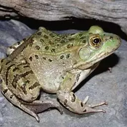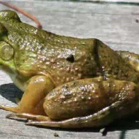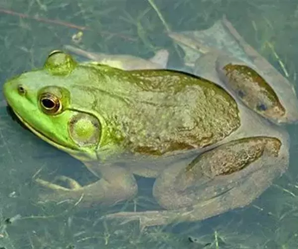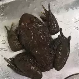 牛蛙 原产于北美,因其鸣叫声宏亮酷似牛叫而得名。1959年牛蛙从古巴引入我国,九十年代左右开始在我国被大范围推广养殖。近年来,牛蛙已成为我国水产养殖重要的名特水产品之一。