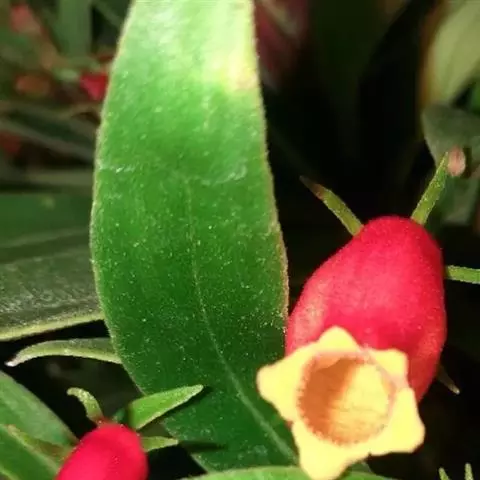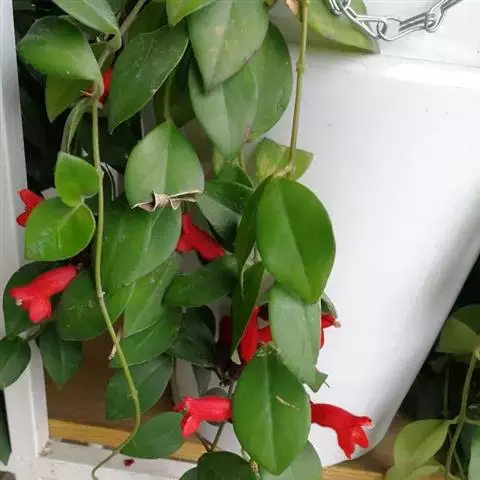 袋鼠花(学名:Nematanthus gregarius D.L.Denham)是苦苣苔科,袋鼠花属多年生草本植物,具有较短的根茎,株高可达120厘米,颜色视品种不同而着生,茎粗可达4厘米左右。叶片扁平且丛生,基生叶色暗绿,总状花序,唇形花冠,因管状外形上附着天鹅绒似的绒毛,酷似袋鼠爪而得名。花色繁多、绒毛状,花期长,春天到夏天都能开花。