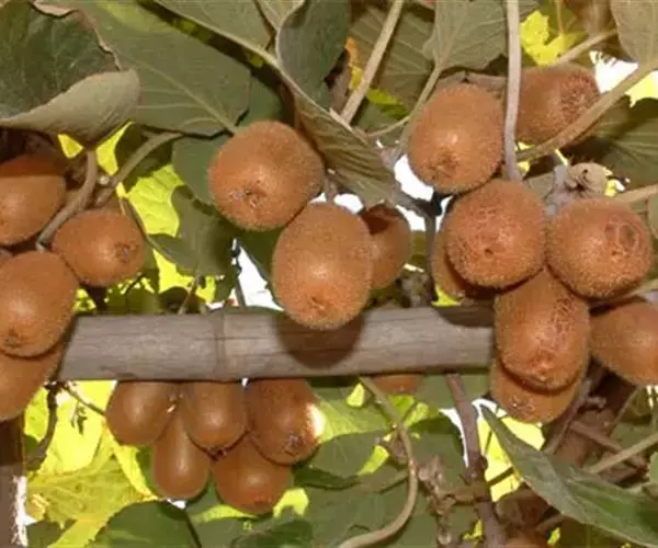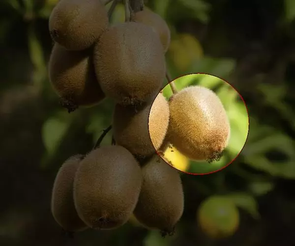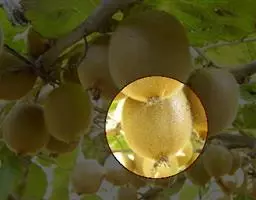 中华猕猴桃果型大,单果重在70~100g之间;果皮黄褐色,密被细毛;果肉呈绿色、黄色或浅黄色,横切面有浅色条纹;果心为白色或浅黄色;种籽黑褐色或紫褐色。果实中维生素C含量特别高,一般每100g鲜果中含维生素C100~200mg,高者可达420mg;含糖8%~14%;总酸1%~4.2%;含有天门冬氨酸0.446%、苏氨酸0.210%、色氨酸0.185%、谷氨酸0.6002%、甘氨酸0.240%、丙氨酸0.245%、脯氨酸0.3615%、胱氨酸0.102%、甲硫氨酸0.023%、异亮氨酸0.237%、亮氨酸0.294%、酪氨酸0.140%、苯丙氨酸0.197%、赖氨酸0.214%、组氨酸0.125%、精氨酸0.304%及氨基丁酸、羟丁氨基酸等多种氨基酸;还含有猕猴桃碱、蛋白水解酶、单宁,以及钙、磷、钾、铁等多种矿物质元素。