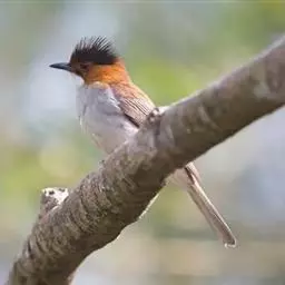 栗背短脚鹎,体长18-22厘米。上体栗褐,头顶和羽冠黑色。背栗色、翅和尾暗褐色具白色或灰白色羽缘。…