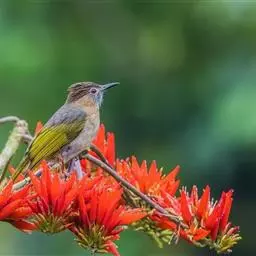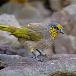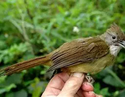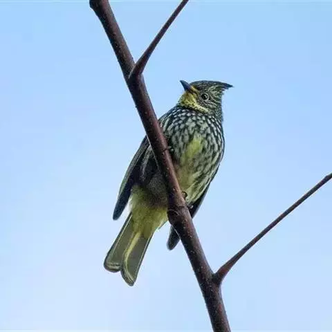 纹喉鹎:体长19厘米,是一种中等体型的偏绿色鹎。特征为头顶、脸颊、颏及喉均具黄色条纹。上体橄榄绿色。…