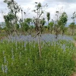 天蓝鼠尾草又名洋苏叶,为唇形科多年生植物,根系发达,地上部分丛生,茎近于木质,较矮,叶对生,灰银色…