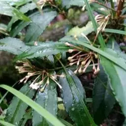 移栽定植:沙播种子约4个月后出苗,出苗率大于90%,且出苗整齐。出苗后2个月左右(翌年5-6月)、当幼苗长出2片约4厘米的叶片后,及时移栽至有散射光的疏林下,株行距50厘米×50厘米,栽后覆土压实,浇足定根水,移栽及易成活。