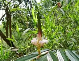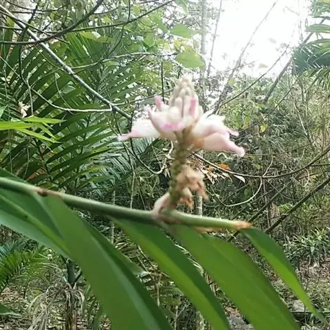密苞山姜是姜科,山姜属多年生草本植物,株高可达1.5米。叶片椭圆状披针形,顶端渐尖,并具细尾尖,基…