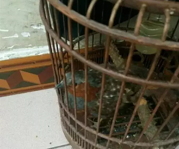 雌鸟和雄鸟相似,但脸部红色较淡,翅上黄色亦较浅淡。
