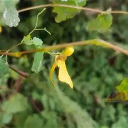 龙虾花是部分凤仙花科植物的俗称,以其花瓣组合形似龙虾而得名。花色艳丽,有黄、红、紫、白等多种颜色,悬吊在长长的花柄下面,在微风中活蹦乱跳,如同活虾,极具观赏价值。根据花形大小不同,一般可分为三种,当地人称花小的为“米虾花”,花大的叫“龙虾花”,介于中间的为“河虾花”,大花谓“对虾”,梗长者名“青丝吊龙虾”,花色金黄的为“黄金凤”。
