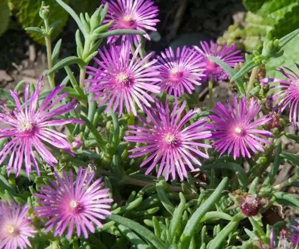 美丽日中花以观花为主。该种花大、色泽艳丽、繁茂,在匍匐平 伸的枝条衬托下,更显娇柔艳丽。常置放于室内,阳台,走廊盆栽或吊盆欣赏,为一种理想的盆栽多肉观花植物。