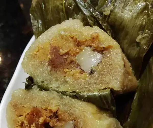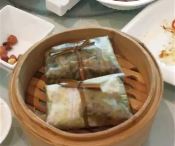 糯米鸡 拆开荷叶时清香扑鼻,鲜味四溢,糯米润滑可口,鸡肉味道完全渗透到糯米之中,荷叶的清香回味悠长,开胃爽口,风味独特。