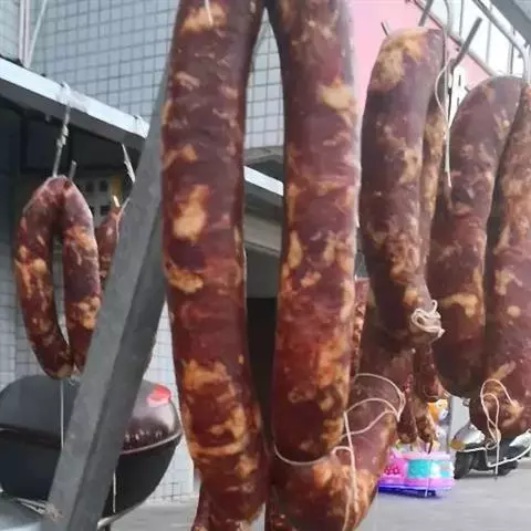 大肠包小肠的糯米肠、香肠,通常都先经过炭烤,而糯米肠切开后,也会再涂抹酱油膏等酱料。