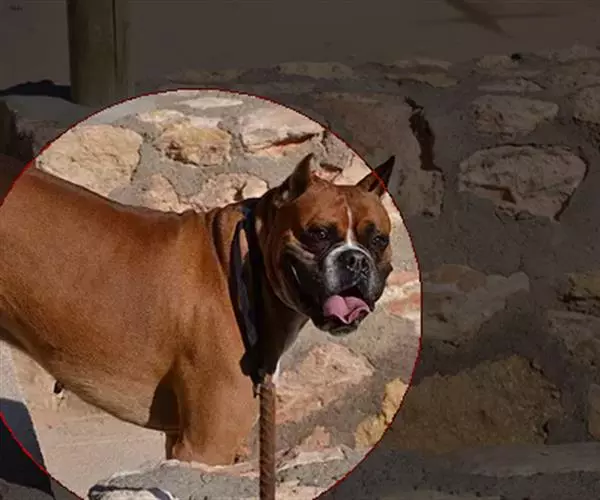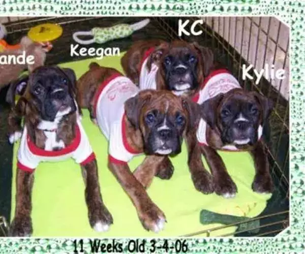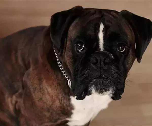 拳师犬,原产地德国,体形外貌漂亮强健。头和身体很相称,鼻大而黑。耳生长位置较高,常人工切去耳尖。眼黑色。颈圆柱形很强壮,富有肌肉,无下垂皮肤。躯体呈正方形,尾巴人工切除(欧洲等国,人性化开始留尾,留耳),尾短,始终高举。前肢直立、平行。忠诚,不记仇。尤其对儿童富有感情,易训练,可用作警犬、护卫犬、个人警卫犬,也可用于导盲犬。由于其服从性好,也是一个很好的伴侣犬。