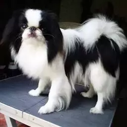 日本狆是极小型犬;被毛长而丰厚,不弯曲;毛色为白色底,带黑色或栗色斑块,…