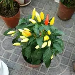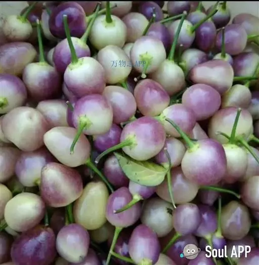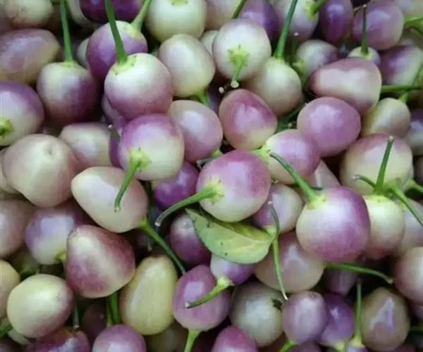 小米粒椒因其果如米粒大小,幼果乳白色而俗称之。株高25厘米左右,分枝多,株型优美,果多,果实呈长扁圆形,果径0.5厘米左右,单果重5克,味辣。其果实在成长过程中有白、紫、红等变化,花白色,叶片深绿色,细小。果实朝上生长,较耐荫,容易管理,观果期长,是家庭用来盆栽观果的最佳辣椒品种之一。因株型小巧,可将盆果置于装饰柜上供观赏。