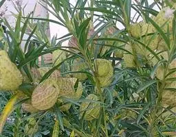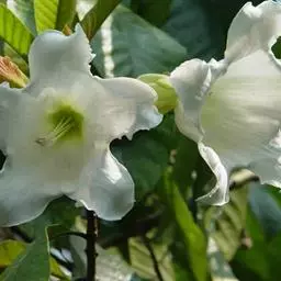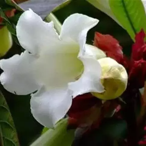 高大木质藤本。全株有乳状液计,枝幼时有锈色柔毛,茎有皮孔。单叶对生;叶柄长达2cm;叶片革质,长圆状倒卵形,长6-15cm,宽3-8cm,先端短渐尖,基部楔形。聚伞花序顶生,着花3-5朵;花梗长2-4cm,花5数;花萼裂片长圆状披针形、倒卵形或倒披针形,长2.5-4cm;花冠长约10cm,漏斗状,裂片卵圆形;雄蕊着生于花冠筒的喉部,花药箭头状。蓇葖果形状多变,圆柱形,长15-18cm,直径3-4cm;内果皮亮黄色。种子长约2cm,种毛白色绢质,长达4cm。花期春、夏季,果期秋、冬季。