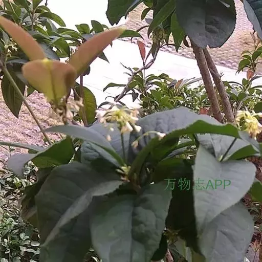 常绿小乔木,高约5米;枝圆柱形,灰褐色。叶片革质,椭圆形或倒卵状椭圆形,长6-8.5厘米,宽3.4-3.7厘米,顶端圆形或有时稍微凹或有小尖头,上面干时橄榄绿色,下面灰白色,初时上面有灰白色绒毛,以后变无毛,下面密被灰白色短绒毛,侧脉在下面显著,凸起,每边有7-8条,以45度开角斜行,在离边缘2-3毫米处汇合成边脉;叶柄长5-7毫米,有灰白色绒毛。花直径2.5-5厘米;花瓣外面有灰白色绒毛,内面带紫色;雄蕊与花柱略红色。浆果卵圆形或长圆形,直径约1.5厘米,外面有灰白色绒毛,顶部有宿存的萼片。